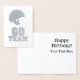 Introducing our remarkable Football Birthday Card, designed to bring a winning touch to any football enthusiast's special day. This exquisite card features a silver foiled football adorning the front, accompanied by the spirited words "Go Team!" emblazoned in a collegiate font. Against a sleek brown background, this design exudes both sophistication and enthusiasm, making it a perfect choice for any football lover.