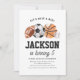 Invite friends and family to your kiddo's birthday party with this sports themed invitation.