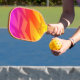 This bold abstract zigzag pickleball paddle features a vibrant gradient of pink, red, orange, and yellow.