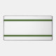 This sleek modern design features two horizontal bold top and bottom forest green edge stripes against a crisp white background.