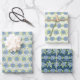 These floral wrapping paper sheets feature striped patterns of blue flowers with honeydew green leaves on a background with tiny dots. They are cute for Spring and Summer gift wraps. All elements for this pattern were hand-drawn.