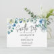 Cheerful white peony flowers and green watercolor leaves form a beautiful border on this pretty Save the Date card for a spring wedding. A chic, modern handwritten scrawl reads SAVE THE DATE above the couple's names. Accented by a lovely cornflower blue back for an afternoon event.