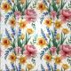 Bright yellow, blue, and pink flowers combine to make a cheerful fabric for spring. Perfect for clothing and quilts
