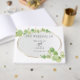 Modern Springtime Eucalyptus Foliage grace this garden fresh guestbook for your guests to sign and leave a short message for you to enjoy in years to come. A triple gold oval frame has fresh watercolor spring green eucalyptus leaves surrounding it. "Happily Ever After " written in a modern style calligraphy on the back along with the wedding date. Customise text, font style, colour and size. We created this template to make it easy for you to personalise with your own information. Design created for TheBarefootBride™ by © WhimsicalArtwork™. This is part of a wedding stationery suite collection with matching wedding accessories also baby shower and other occasion stationery. Feel free to contact us if you need assistance.
