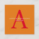 Modern Square Monogram Trendy Orange Red Business Card