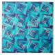 Mid-Century Modern abstract tile of squared spirals in aqua, cobalt blue, and dark navy / indigo, accented with white