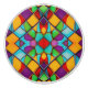 A modern glass painting design made up of different shaped colourful tiles. Stained glass decor has a long history, stretching from the Gothic windows of the Middle Ages to the early 20th century lampshades and door glazing.