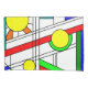 This pillowcase has a mid-century modern design of a stained-glass look with black lines and circles filled with primary and secondary colours.