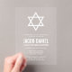 Modern and simple Star of David clear acrylic Bar Mitzvah invitations.