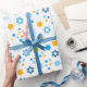 This modern wrapping paper is super cute! It has funky dots, snowflakes, and Stars of David all in blue and gold. Get enough to wrap all your gifts! They'll look fabulous!