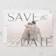 Announce your wedding date in unforgettable style with these elegant and modern photo save the date cards, featuring a full bleed horizontal or landscape orientated photo with "save the date" overlaid in soft black lettering at the corners. Your wedding date appears inside the letter D, with your names and wedding location alongside. Personalise the back with additional details, such as your wedding website.