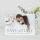 Announce your wedding date in unforgettable style with these elegant and modern photo save the date cards, featuring a full bleed horizontal or landscape orientated photo with "save the date" overlaid in black lettering along the bottom. Your names, wedding date, and wedding location appear beneath in modern lettering. Personalise the back with additional details, such as your wedding website.