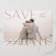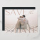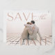 Announce your wedding date in unforgettable style with these elegant and modern photo save the date cards, featuring a full bleed horizontal or landscape orientated photo with "save the date" overlaid in real rose gold foil lettering at the corners. Your wedding date appears inside the letter D, with your names and wedding location alongside. Personalise the back with additional details, such as your wedding website.