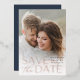 Announce your wedding date in unforgettable style with these elegant and modern photo save the date cards, featuring a full bleed vertical or portrait orientated photo with "save the date" overlaid in real rose gold foil lettering along the bottom. Your names, wedding date, and wedding location appear alongside in modern lettering. Personalise the back with additional details, such as your wedding website.