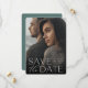Announce your wedding date in unforgettable style with these elegant and modern photo save the date cards, featuring a full bleed vertical or portrait orientated photo with "save the date" overlaid in white lettering along the bottom. Your names, wedding date, and wedding location appear alongside in modern lettering. Personalise the back with additional details, such as your wedding website.