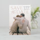 Announce your wedding date in unforgettable style with these elegant and modern photo save the date cards, featuring a full bleed vertical or portrait orientated photo with "save the date" overlaid in real rose gold foil lettering across the top. Your names, wedding date, and wedding location appear alongside in modern lettering. Personalise the back with additional details, such as your wedding website.