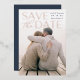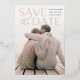 Announce your wedding date in unforgettable style with these elegant and modern photo save the date cards, featuring a full bleed vertical or portrait orientated photo with "save the date" overlaid in real rose gold foil lettering across the top. Your names, wedding date, and wedding location appear alongside in modern lettering. Personalise the back with additional details, such as your wedding website.