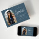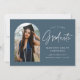 Trendy graduation announcement featuring the graduate's photo framed by a dark steel blue arch with "Graduate" in a white handwritten script. Personalise the front of the arch graduation announcement card by adding the graduate's name, graduation year, school name, and future plans. The photo graduation announcement reverses to display a steel blue and white dotted pattern. The announcement is suitable for both high school and college graduates.
