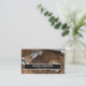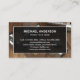 Hardware supplies business card featuring bolts, nuts and washers on a wooden desk background with modern typography. Add your name and contact details to make a lasting first impression.