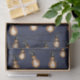 Modern and fun strings of Edison style bulbs over a dark navy background tissue paper.