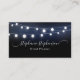 Elegant and classy dark black background with romantic string of lights across the front and back of this modern trendy business card. Perfect for a wedding or event planner, consultant, dj, restaurant, night club or evening themed business.