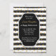 Simple and modern Retirement party invitation in striped black and white with golden polka dots. Matching design on card back. All text is ready for you to customise with your information.