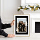 Celebrate the season with our elegant, minimal Holiday wall art print, a refined décor piece that brings together modern charm and timeless sophistication. Your chosen photo is showcased at the centre, framed by a bold, clean stripe border set against a warm beige background for a contemporary and striking look. Hand-drawn minimalist pine illustrations with subtle gold detailing accent the corners, adding a festive yet understated touch that complements any space. Designed with a chic, neutral colour palette and featuring original artwork by ©Moodthology Papery, this print is perfect for displaying cherished holiday memories while elevating your seasonal décor. Ideal for those who appreciate clean design, festive spirit, and meaningful moments.