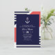 These adorable nautical anchor design bridal shower invitations are perfect for inviting the girls to come out and celebrate the bride-to-be. Customise with your custom party details. The front side of this bachelorette party invitation is a navy blue, ivory, white and red colour block stripe design. The reverse side of the invitation is coordinating blue and ivory stripe. To further customise font size, style or colour - use the customise it button. Visit our store to see our entire collection of wedding products and matching customised bridal shower party napkins. If you need further customisation than the template allows, contact me using the button below.