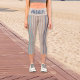 Capri Leggings in beige and blue. Custom quote art hashtag design "#momlife" in beach colours. For busy moms who love their workout.