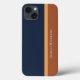 Elegant and modern custom name phone case striped with vertical colour blocks in navy blue, golden brown, and bronze.