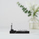 Modern striped oilfield design. A black oil drilling rig silhouette with a modern white and grey striped background. After personalising this template, you can choose to "click to customise further" and change the grey coloured stripes to a colour of your choosing. If you choose to change the colour of the background, don't forget to change the colour of the single grey stripe near the bottom left as well.