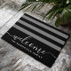 Modern Striped Pattern Family Welcome Black Grey Doormat