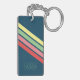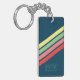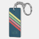 This contemporary keychain design features a retro diagonal red, coral pink, yellow, and light green stripes pattern design on a dark blue coloured background. With the option to customise or personalise with a name, monogram, or initials of your choice. Beautiful, modern and cool cover for the trend-savvy and art-loving hip trendsetter, vintage retro look style motif lover.