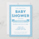 Modern Baby Shower Invitation featuring blue stripes. Ideal for a boy baby shower. You can edit the text to fill your details and to customise font click "Customise it".