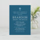 Modern Stripes Navy Blue First Communion Boy Invitation