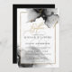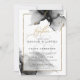 Wedding Invitation | Modern Abstract Charcoal Watercolor wedding motif. Details highlighted by a thin gold frame that allows part of the watercolor design on top showing full colours and part of it behind showing a misty veil of colour - Moody and ethereal , this beautiful hand painted watercolor illustration in shades of charcoal black and greys with gold fleck highlights - Hand written script calligraphy is combined with a minimalist, contemporary style font. A trendy and modern look for all seasons. This is part of a wedding stationery collection with matching wedding accessories. © WhimsicalArtwork created for the BarefootBride™