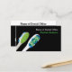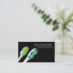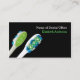 A modern style dentist business card with a photograph of a white toothbrush with blue and green bristles against a black background. Personalise this dual purpose dentistry business card, with an appointment reminder space on the back, by adding the name of your professional dental office, dentist, and contact information to the custom template text areas.