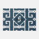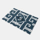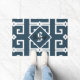Modern style greek key blue and white monogram doormat