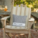 Elegant and stylish, this outdoor pillow showcases a chic Herringbone design in classic black and white. The front can be customised with a name or boat name, beautifully rendered in a serif typeface. The backside of the pillow features the pattern alone. For beach house or coastal home decor, choose cotton or polyester materials. This personalised pillow is a beautiful gift idea for her and him, boaters and sailors. Patio deck decorating ideas made with ocean love © y.BEE SEA