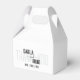 This modern wedding Favour Boxes features a sleek black personalised text on a crisp white background, embodying the essence of minimalism. The design is elegant and timeless, perfect for couples who appreciate simplicity and sophistication.