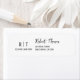 This design features a minimalist, professional business address label with a white background and modern, stylish black coloured text. It includes a customisable option to add your initials and profession or job title on the left side paired with your full name in a script font and a mailing address on the right side.