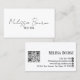 This design features a minimalist, stylish, professional business card with a white background and black coloured text and icons. The front includes customisable option to add your full name in a script font and profession or job title. The back has customisable option to add your full name, contact information (telephone number, e-mail, website, mailing address) and upload your very own scannable QR code image. Make sure to test QR code image with your camera before placing your order.