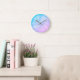 Modern Stylish Blue Pink Spectrum Radiant Pattern Round Clock