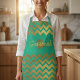 Modern personalised apron design featuring gold chevron pattern on a green background with your custom text in the middle. The text is fully customisable. To change it use the Personalise option. For more changes, such as changes to the font, font colour or text layout, use the Edit design tool option.