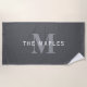 Modern Stylish Dark Grey Monogram & Name Beach Towel