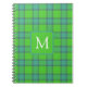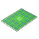 Modern stylish green &blue Plaid tartan monogram Notebook