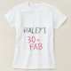 Modern and stylish 30th birthday t-shirt with the text fifty and fabulous in hot pink elegant script. Simply add your name to this 30th birthday celebration t-shirt. Perfect birthday gift for a modern, stylish and elegant 30 year old. Exclusively designed for you by Happy Dolphin Studio.