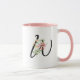 Modern Stylish Letter W Black Script Floral Mug