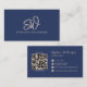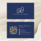 Modern Stylish Monogram QR Code Minimal Navy Business Card