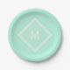 Modern Stylish Pale Mint Green Custom Monogram Paper Plate
